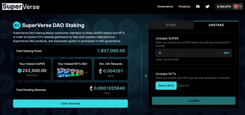 DAO 스테이킹 웹사이트: staking.superverse.cool